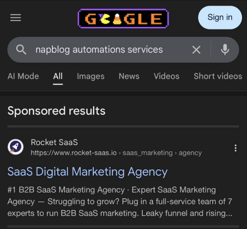 “Because Napblog has been indexed tightly with automation + SaaS growth + startup workflows, and Rocket SaaS ranks heavily for similar intent keywords — especially B2B SaaS, Google Ads, PPC, demand generation, website design, marketing department replacement.